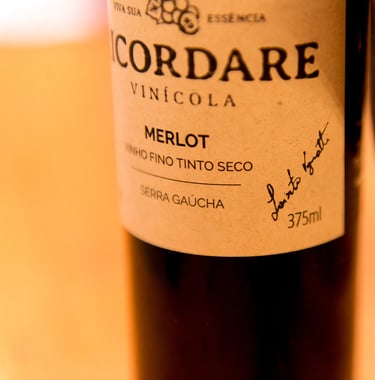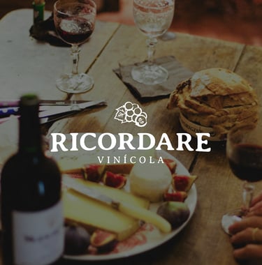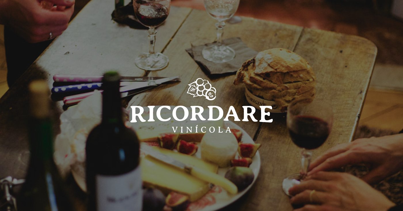 Autenticidade, confiança, honestidade, integridade, transparência, inovação com uma abordagem artesanal e sustentabilidade, assim é a Ricordare Vinícola. A marca propõe para os consumidores, um produto mais verdadeiro e artesanal, resgatar nossa espontaneidade, como raízes de nossa história, o sentimento de pertencimento, o desejo de reviver sensações e a necessidade de conexão - com nossas origens e identidade, uma integração de corpo, mente e alma com a natureza. A partir disso buscou-se olhar para natureza como uma fonte de inspiração em design, observar suas formas e proporções para criação do símbolo da marca. Optou-se então por uma técnica artesanal de carimbos, feito a partir de um grão de uva cortado ao meio, deixando à mostra suas sementes. O preto será a cor predominante para destacar e dar força ao logotipo. O bordô ou castanho-avermelhado está associado a consciência e responsabilidade, ao conforto e simplicidade, conecta a pessoa à natureza e à terra, transmitirá vivacidade, energia e amor, criando conexões emocionais e memórias nostálgicas.