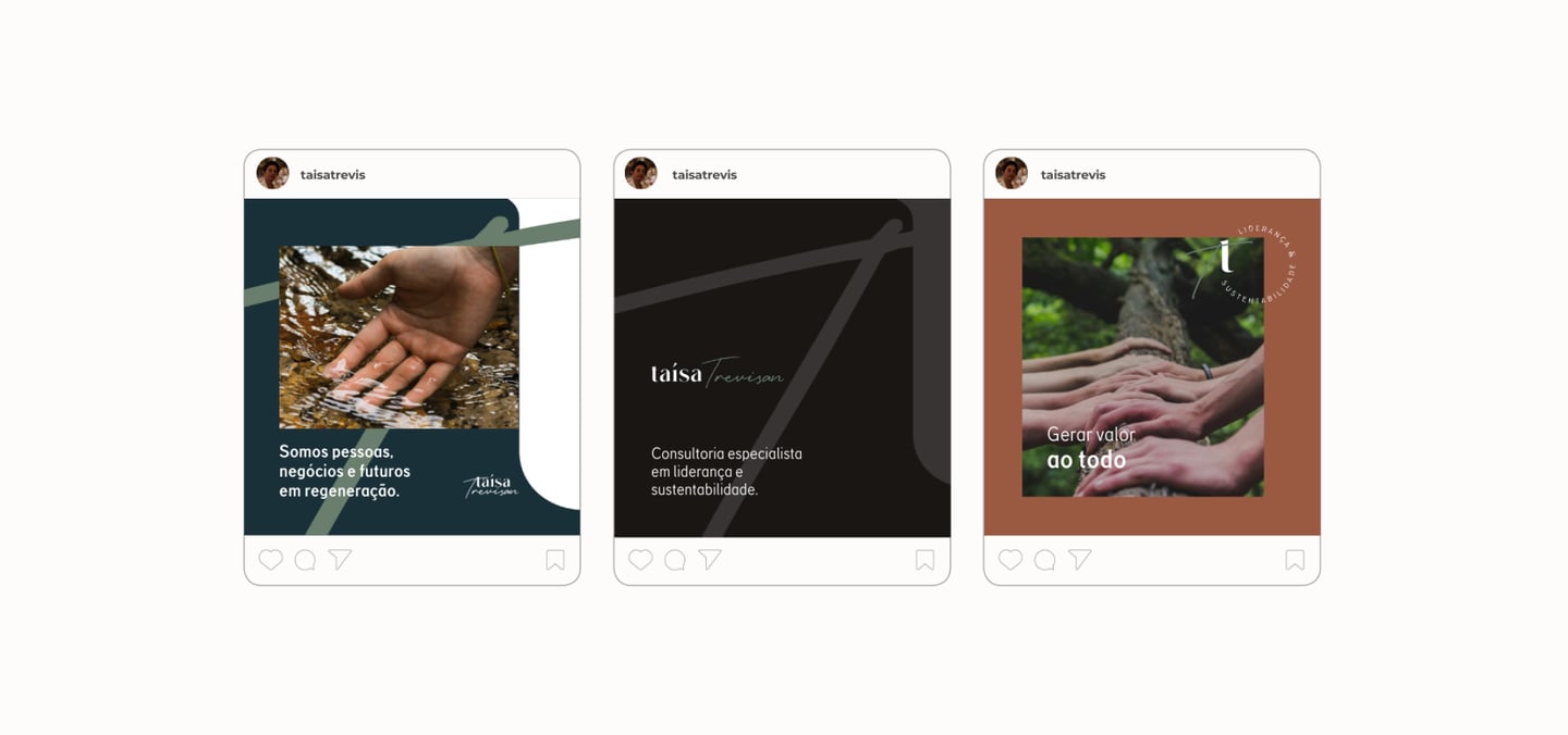 O que é feito além do que é preciso fazer? Quais impactos são causados? Percebe-se a urgência de conduzir negócios, saindo de estados utópicos e insalubres, buscando realidades mais seguras, tomando ações que afirmem a vida na Terra e que respeitem as relações.A marca convida a incluir, prosperar e evoluir. Pensar em sustentabilidade no agora, fomentar uma gestão estratégica que conecte todos os sistemas vivos, compreendendo que o significado de desempenho é gerar valor ao todo.Contudo, a marca Taísa Trevisan se posiciona como especialista em liderança e sustentabilidade para contribuir ao mercado, desenvolver pessoas e organizações, além de ajudar a construir uma nova consciência: olhar de forma sensível e íntegra para questões de governança social, ambiental e corporativa.